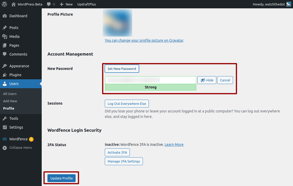 Change your WordPress Password from the Dashboard